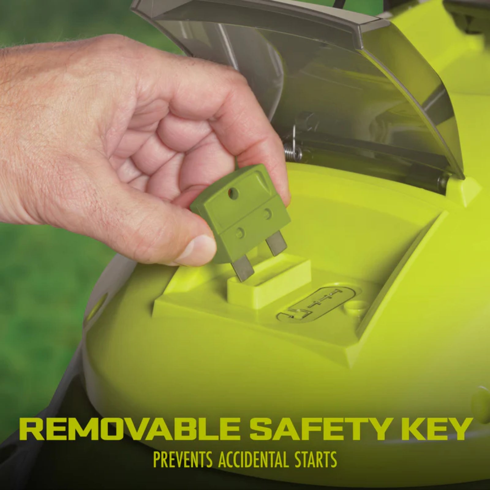Cut the cord (and the gas) with the MJ401C-PRO — Sun Joe’s cordless version of their best-selling electric mower. Ideal for small-to-medium lawns, this battery-powered mower features a durable steel blade that cuts a 14" path and offers 3 manual height positions for a perfect trim. Just insert the key, press the safety switch and squeeze the trigger to start.