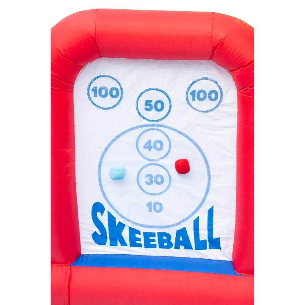 Introducing the Banzai Target Toss Water Park - your ultimate summer adventure companion! Aim high and slide your way down to victory as you target toss with precision using the six self-sticking toss balls included. Jump into fun with the lagoon-style splash pool, where excitement meets relaxation. Plus, stay cool with the detachable water-spraying hose for endless aquatic thrills. With quick inflation in under 2 minutes, your splash-tastic journey awaits!
