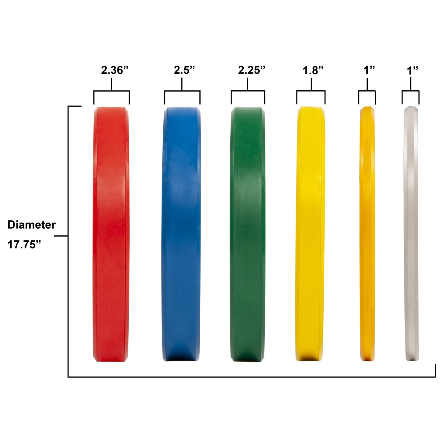 Bumper plates, or just bumpers, are Olympic-sized weight plates that are made of thick, dense rubber for the purpose of allowing a loaded bar to be safely dropped without risk of damaging your lifting platform, the plates themselves, or the floor. These high-density rubber plates with solid stainless-steel insert can withstand repeated drops. They will not only protect any type of floors, but also protect your bars. They’re colour coded for easy identification, and their weight is labeled in both pounds and kilograms. They’re the perfect weights for all types of resistance training including weightlifting, powerlifting, and CrossFit.
