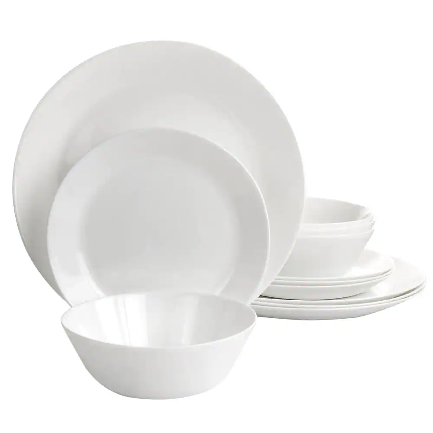 Gibson Courtyard 12 Piece Dinnerware Set in Opal Tempered Glass