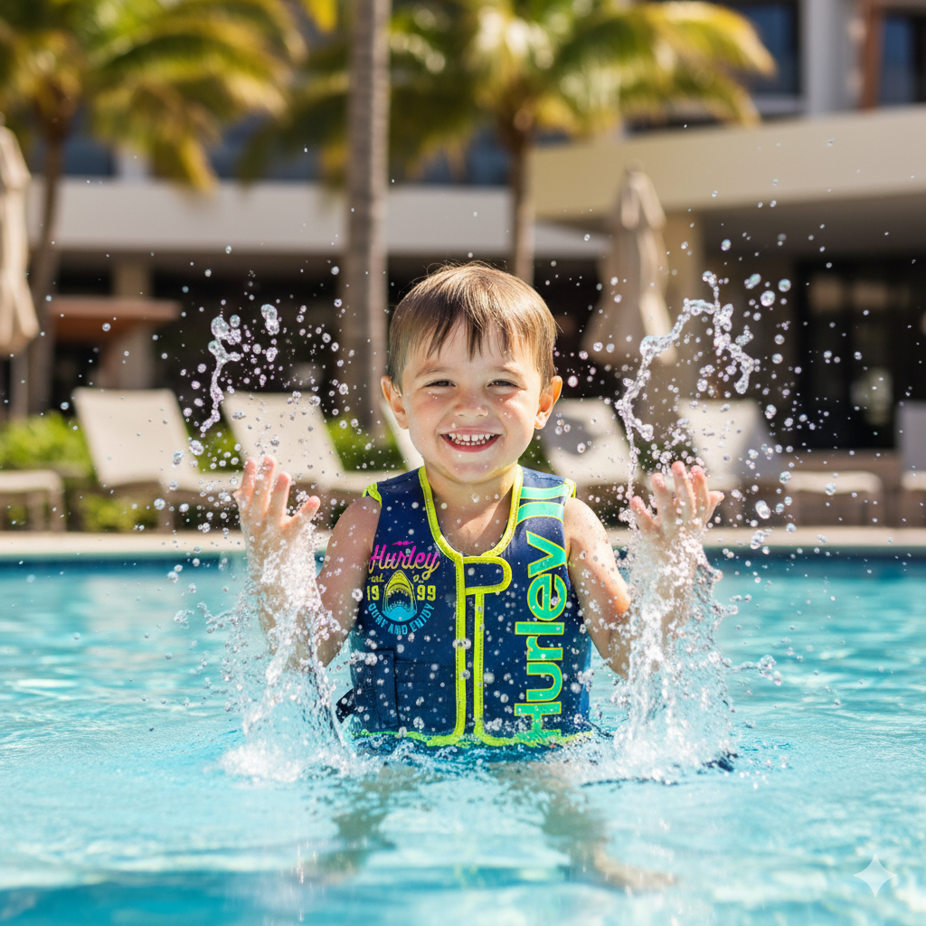 Have a blast this summer swimming with the Neoprene Zip Up Swim Training Vest by Hurley. This vest promotes proper swimming technique by giving you the ability to swim with full range of motion while still having flotation support. It’s made of a high-quality neoprene material, which maximizes comfort and durability. Best of all, it is super easy to store away. Once you’re done swimming, the vest packs extremely flat and is great for travel. Please note: this flotation vest is intended for use with adult supervision.