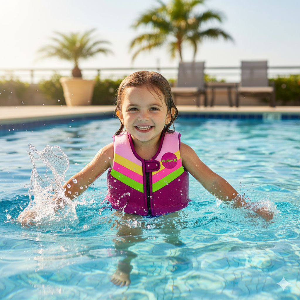 Hurley Neoprene Zip Up Swim Training Vest, Pink