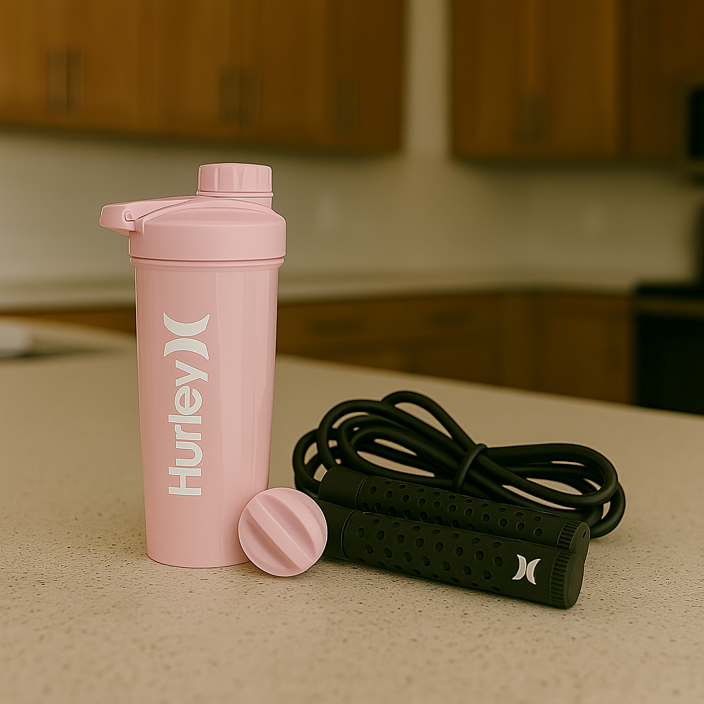 Power your workouts with the Hurley Pink 28 oz Shaker Bottle with Fitness Rope! This all-in-one fitness set includes a sleek pink shaker bottle with a secure flip lid and mixing ball—perfect for protein shakes and hydration on the go. Paired with a durable, no-slip grip jump rope, it’s your ideal combo for strength, cardio, and recovery. Stylish, functional, and built to move with you—wherever your fitness journey takes you.