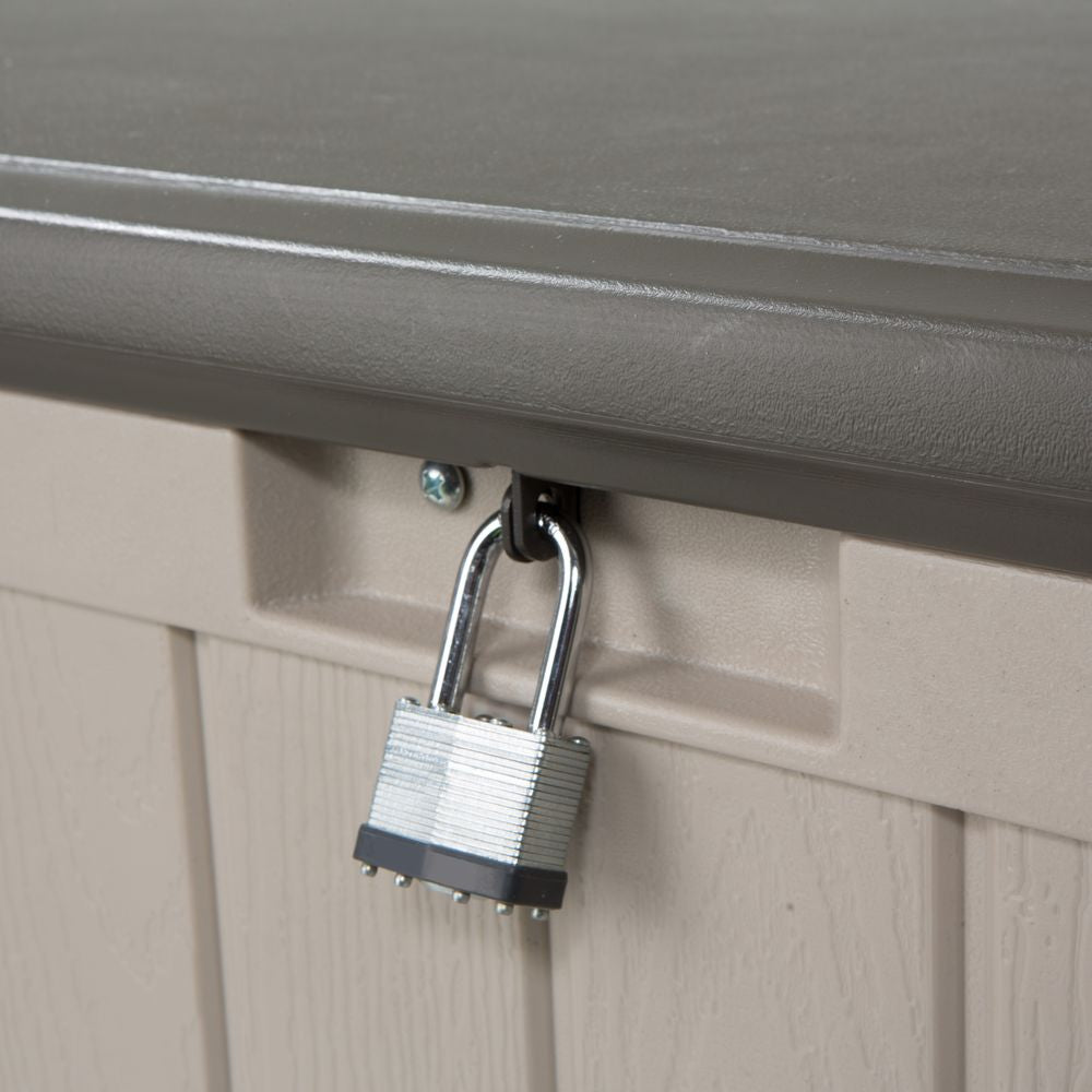 Need a more convenient place to store items around your yard? Lifetime’s Deck Boxes are the perfect way to expand your storage and get better access to items you use regularly around your yard. Whether you have gardening tools, lawn equipment, yard games, or even outdoor seat cushions, the Deck Box makes them easy to store and find when needed. It is durable, UV-protected, and weather resistant to ensure your belongings have years of protection. The lid is lockable (lock not included) to provide even greater security and has a controlled spring-hinge for easy opening and closing. It has molded side handles for easy transport making it easy to move around your yard or patio and it is even sturdy enough to be used as a bench. The Lifetime Deck Box blends durability, convenience and style to create a versatile storage solution.