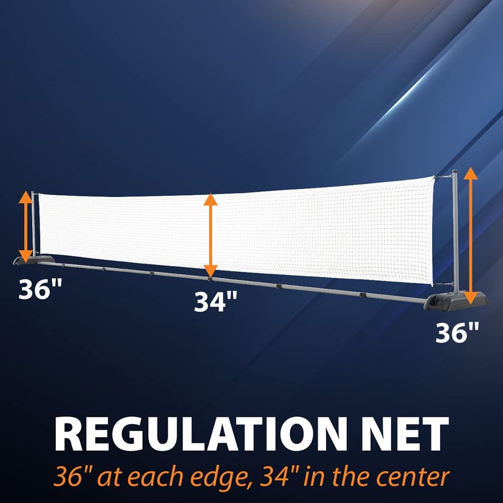 Get outside with your family and friends and face off to determine who is the Pickleball champ. The Lifetime Pro Pickleball Set provides hours of exercise that is sure to be competitive and fun. Get into teams of 2 with the 4 paddles included in the set. Each set of paddles comes with a matching, color-coordinated design so you can distinguish between teams. The high quality net and base are made to maintain regulation height and width while you compete. With 3 outdoor Pickleballs and 1 indoor Pickleball, you can start a match rain or shine. The Lifetime Pro Pickleball Set is the perfect way to stay active and bond with family and friends.