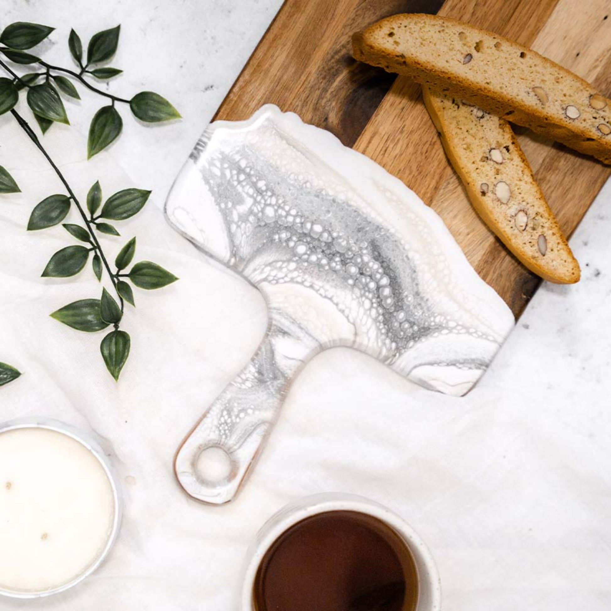 Impress your guests with our handmade Medium Acacia Cheeseboard. These pieces blend gorgeous Acacia hardwood and an eco-friendly epoxy to create a one-of-a-kind piece of serve ware for your home. These cheese boards are perfect for serving a group of 2-4 people. They make the perfect gift for a house-warmings, weddings or maybe just a treat for yourself. Serve your favorite snacks for a girls night in, a date night with your spouse or for a get together with friends. We can only imagine the beautiful spreads you’ll create with your new cheeseboard!