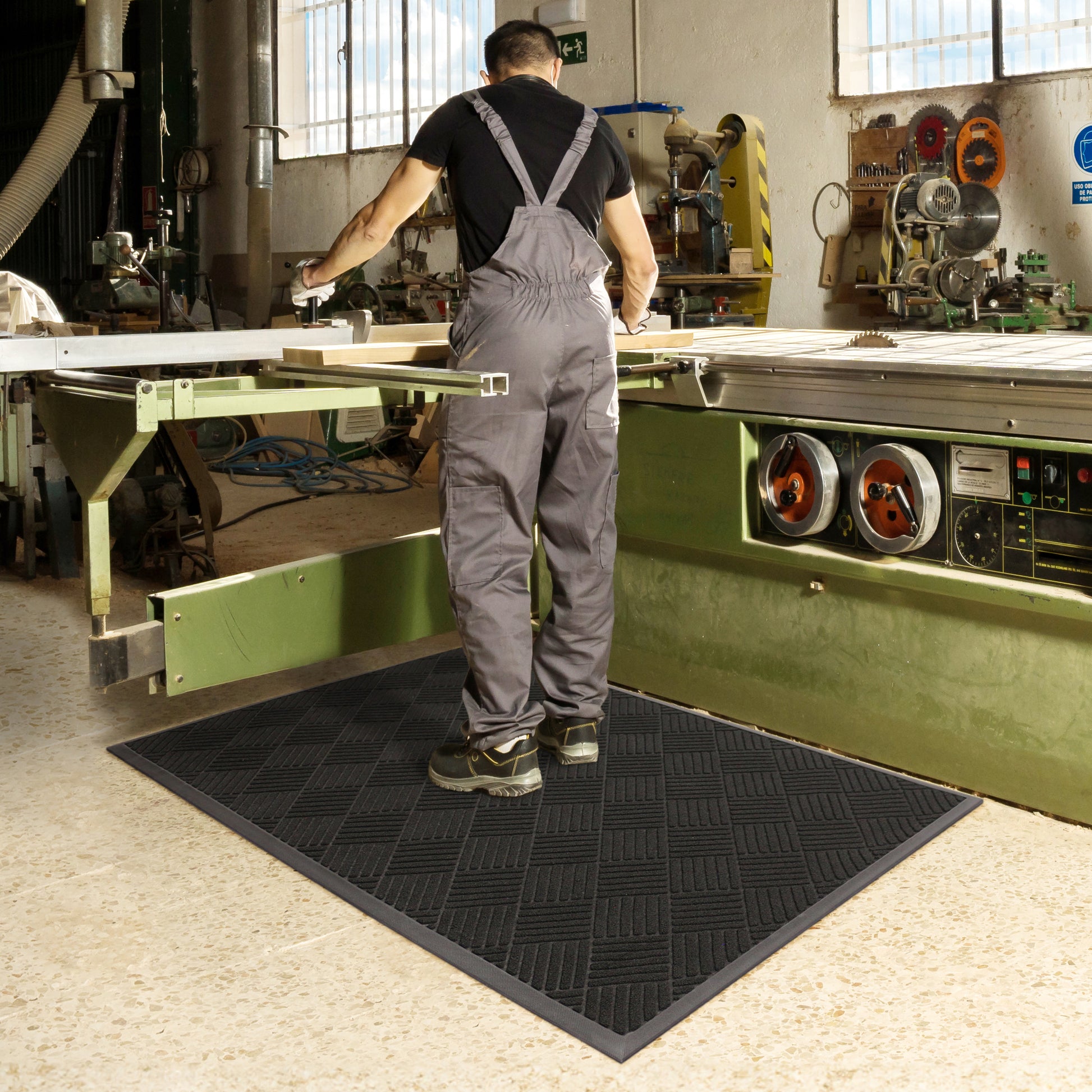 Elevate your entryway with our Tufted Embossed Doormat featuring a decorative beveled edge TPE border which not only enhances the mat's visual appeal but also adds substantial weight and durability. Crafted with absorbent 100% recycled Polyproylene yarns and an embossed pattern for efficient wiping and scraping, this doormat ensures a clean and inviting entrance. With durable, stain-resistant polypropylene yarns and a robust recycled TPE backing for tear resistance and high-impact strength, it's the perfect combination of style and functionality for your doorstep. Welcome guests with a touch of elegance and lasting durability.
