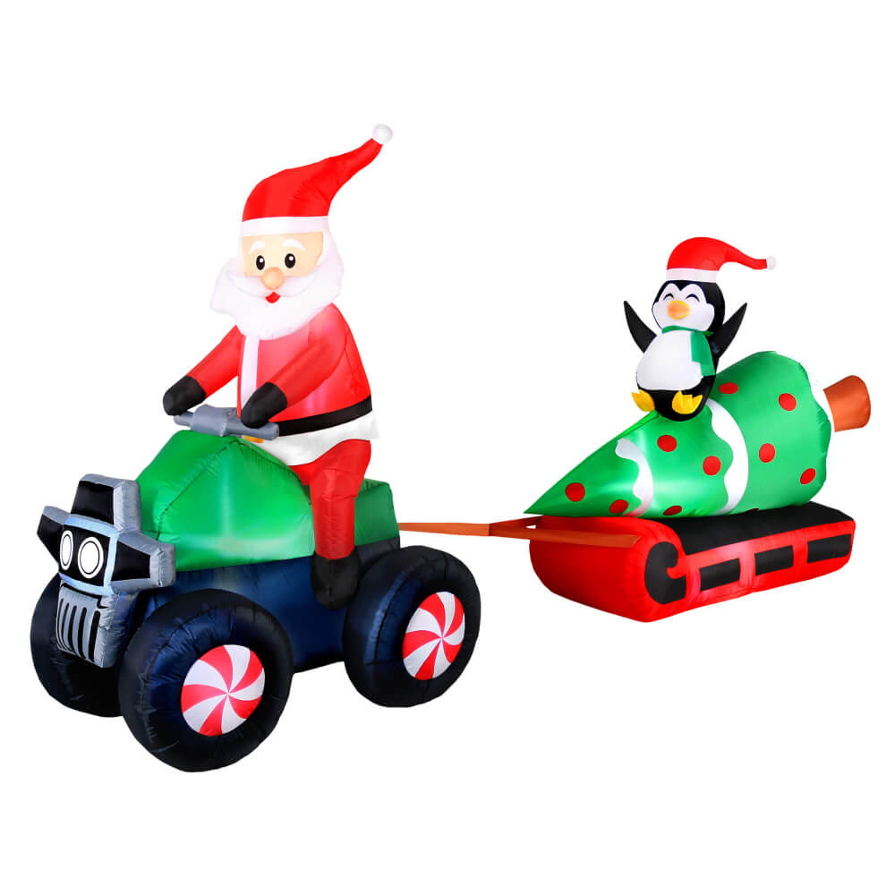 Occasions Christmas 12 Foot Inflatable Santa on ATV Pulling Tree, Penguin