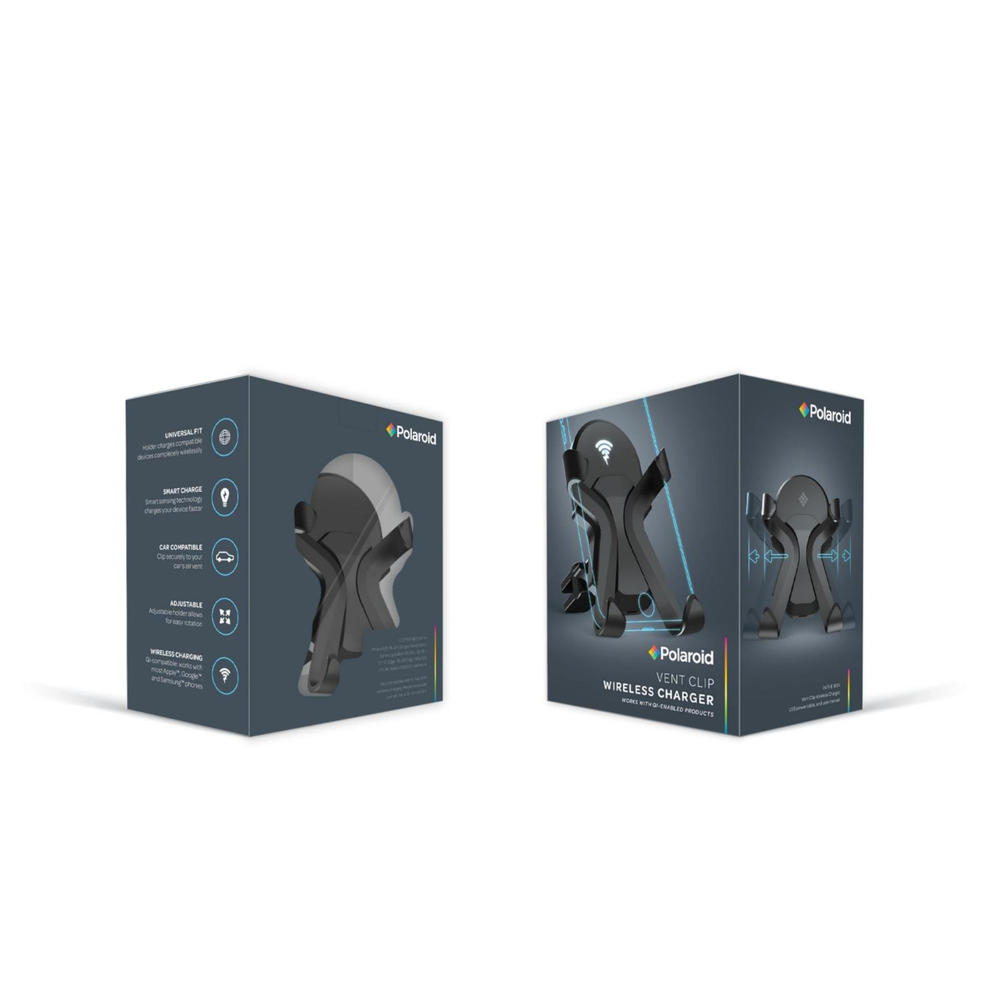 Charge your wireless charging enabled device rapidly using this 5W rapid charger by Polaroid. Clip your device in and watch as the battery recharges faster and safer, using it’s sensing technology. Easily mount it to your cars air vent for convenience and practicality, so you can use and charge on the go. It’s rubber edges make it easier to charge and helps keep your phone positioned in the correct spot. It is universally compatible across cellphone brands and models, including Apple, Google, Samsung and more, and has a wide stretching mouth to hold all different sizes up to 6”.