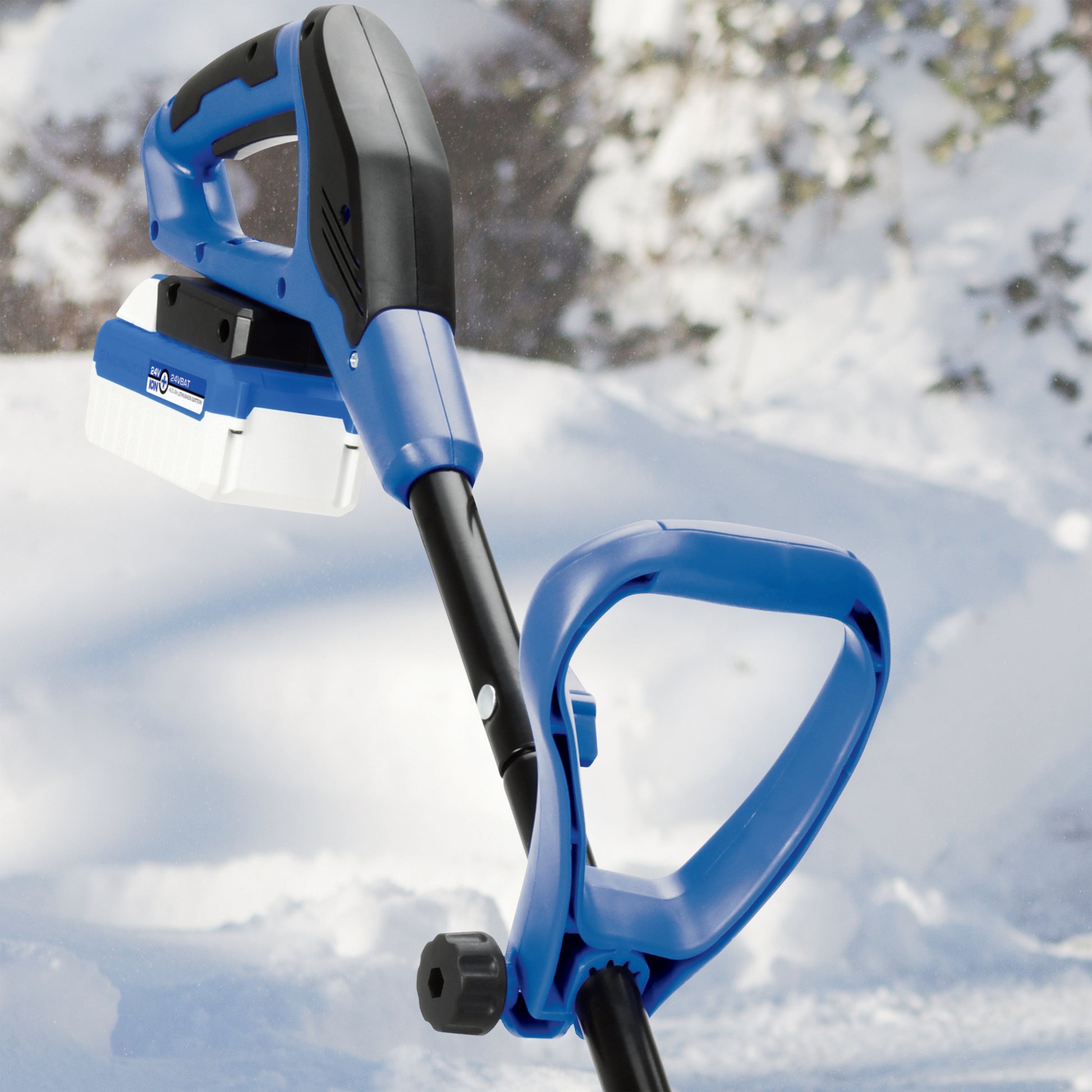 WHEN IT COMES TO SNOW, GO WITH JOE®. Introducing the ultimate grab-n-go cordless snow-busting tool: 24V-SS13 from SNOW JOE. Combining innovation and functionality, SNOW JOE provides an easy, convenient and cordless solution to get snow out of your way this winter. Powered by SNOW JOE’s exclusive IONMAX 24-Volt* lithium-ion battery system. The light choice is the right choice with SNOW JOE! Weighing less than 13 lbs, 24V-SS13 blasts through up to 300 lbs of snow per minute while the dual-handle design eliminates the need to bend and strain, maximizing user comfort and ease of use. Equipped with a heavy-duty 2-blade paddle auger, SNOW JOE throws snow up to 20 feet away, clearing a 13-inch wide by 6-inch deep path with each pass. And the durable scraper blade at the base of the unit lets you clear right to the ground without damaging your deck or pavement! When the job is done, 24V-SS13 stores easily inside of a hall closet for quick, convenient access. GET EQUIPPED® this winter with the 24V-SS13 24-Volt* 4.0 Ah Cordless Snow Shovel from SNOW JOE® and leave back-breaking snow removal behind you.