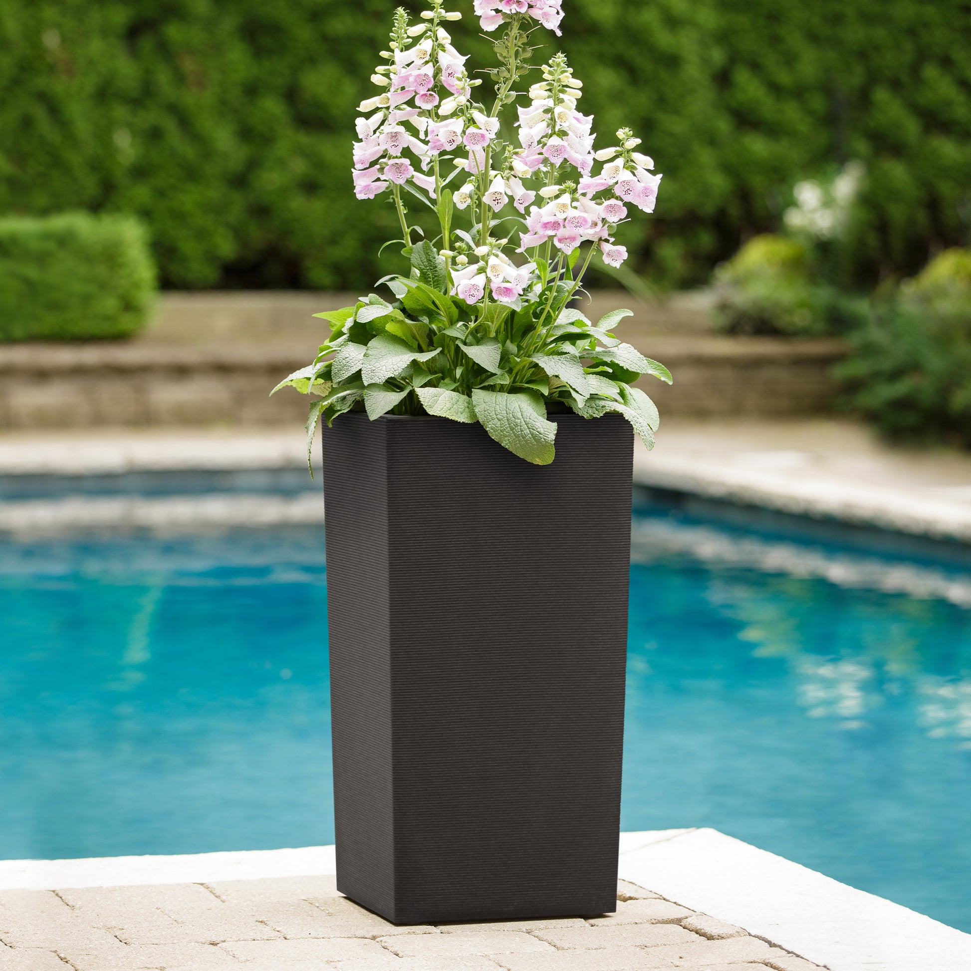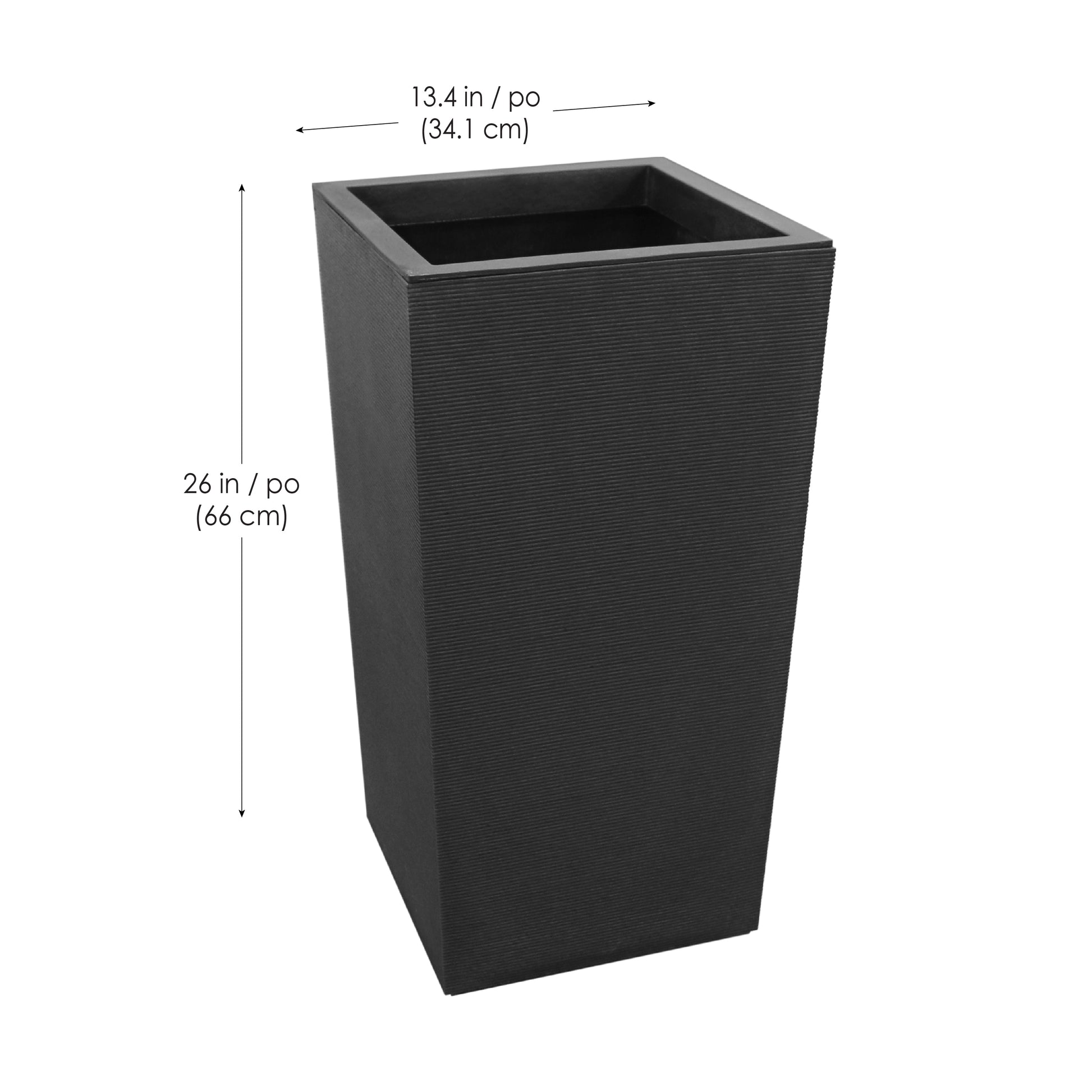 Tierra Verde 13in W x 26in H Citadel Horizon Large Recycled Self-Watering Indoor/Outdoor Column Planter in Black