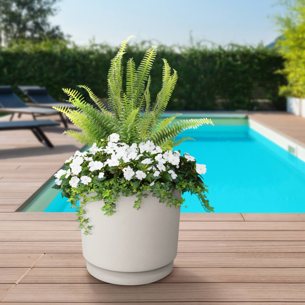 Tierra Verde 15" W x 15" H Alto Modern Recycled Self-Watering Planter - Eggshell White, Indoor/Outdoor