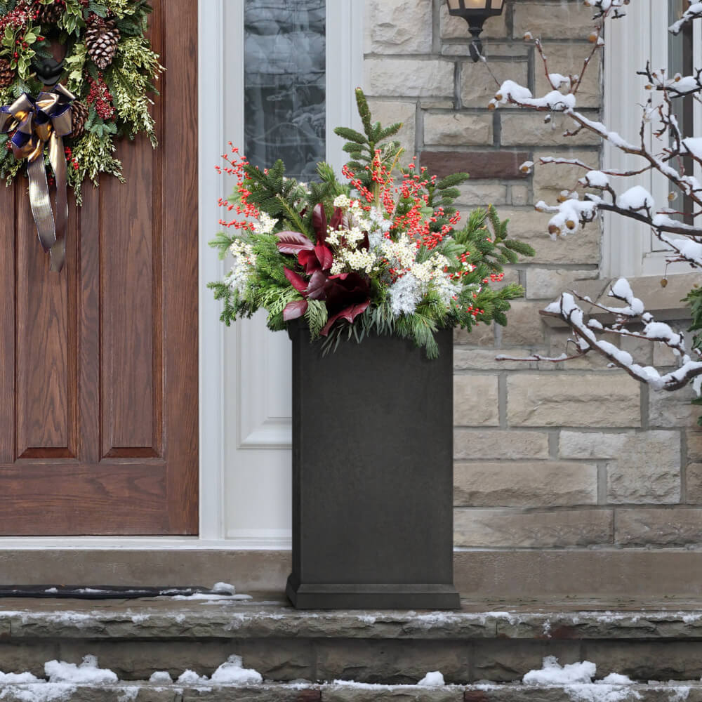 The Tierra Verde 15in W x 26in H Allegro Smooth Large Recycled Self-Watering Indoor/Outdoor Column Planter in Black is an elegant and eco-friendly choice for any outdoor living space, patio, or indoor area. Crafted from recycled material, this sleek planter is designed to withstand the elements, offering durability for all seasons. Featuring a raised insert that creates an interior self-watering system, it ensures plants stay hydrated with ease. The water reservoir at the base allows plant roots to stretch down into the water, providing nourishment and promoting healthy growth. When used outside, a plug on the bottom may be removed to drain excess water. Ideal for busy plant owners, especially those who travel, this feature keeps your plants well-maintained with minimal effort. Tierra Verde planters are tested in -40 to +40 degree weather, ensuring that it is suitable for year-round use. Perfect for a variety of plants, this Tierra Verde planter brings both practicality and sophistication to your space. Made locally in North America