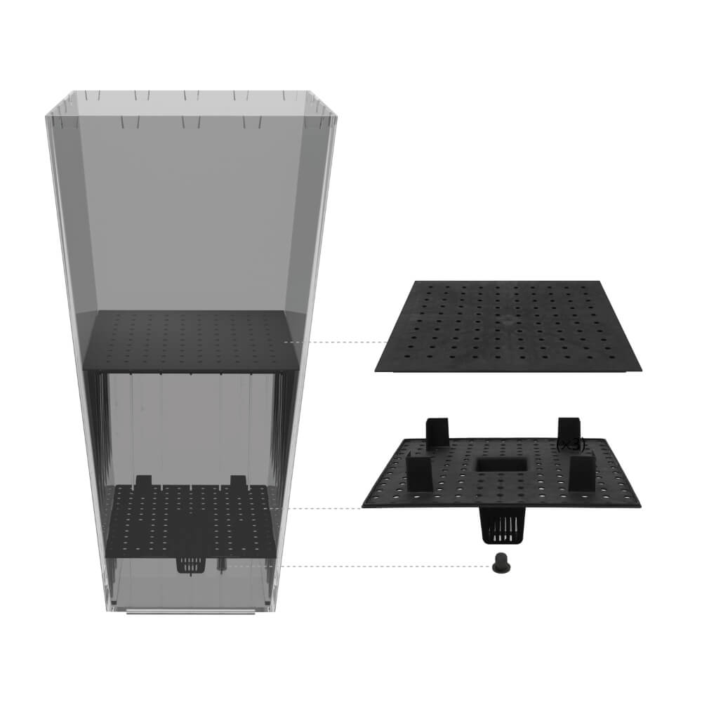 The Tierra Verde 18in W x 36in H Sonata Classic Self-Watering Tapered X-Large Square Indoor/Outdoor Planter in Black is an elegant and eco-friendly choice for any outdoor living space, patio, or indoor area. Crafted from recycled material, this sleek planter is designed to withstand the elements, offering durability for all seasons. Featuring a raised insert that creates an interior self-watering system, it ensures plants stay hydrated with ease. The water reservoir at the base allows plant roots to stretch down into the water, providing nourishment and promoting healthy growth. When used outside, a plug on the bottom may be removed to drain excess water. Ideal for busy plant owners, especially those who travel, this feature keeps your plants well-maintained with minimal effort. Tierra Verde planters are tested in -40 to +40 degree weather, ensuring that it is suitable for year-round use. Perfect for a variety of plants, this Tierra Verde planter brings both practicality and sophistication to your space. Made locally in North America